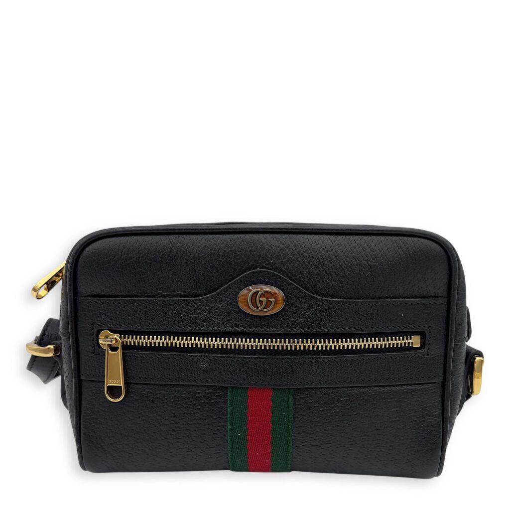 Ophidia Shoulder Bag Black in Calfskin, Gold hardware