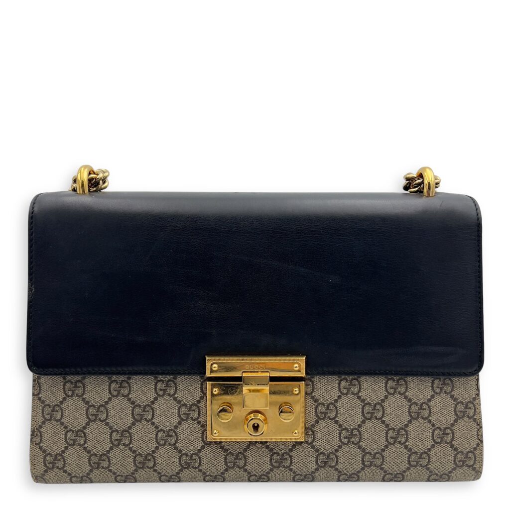 Padlock Shoulder Bag Brown in Coated Canvas, Gold hardware