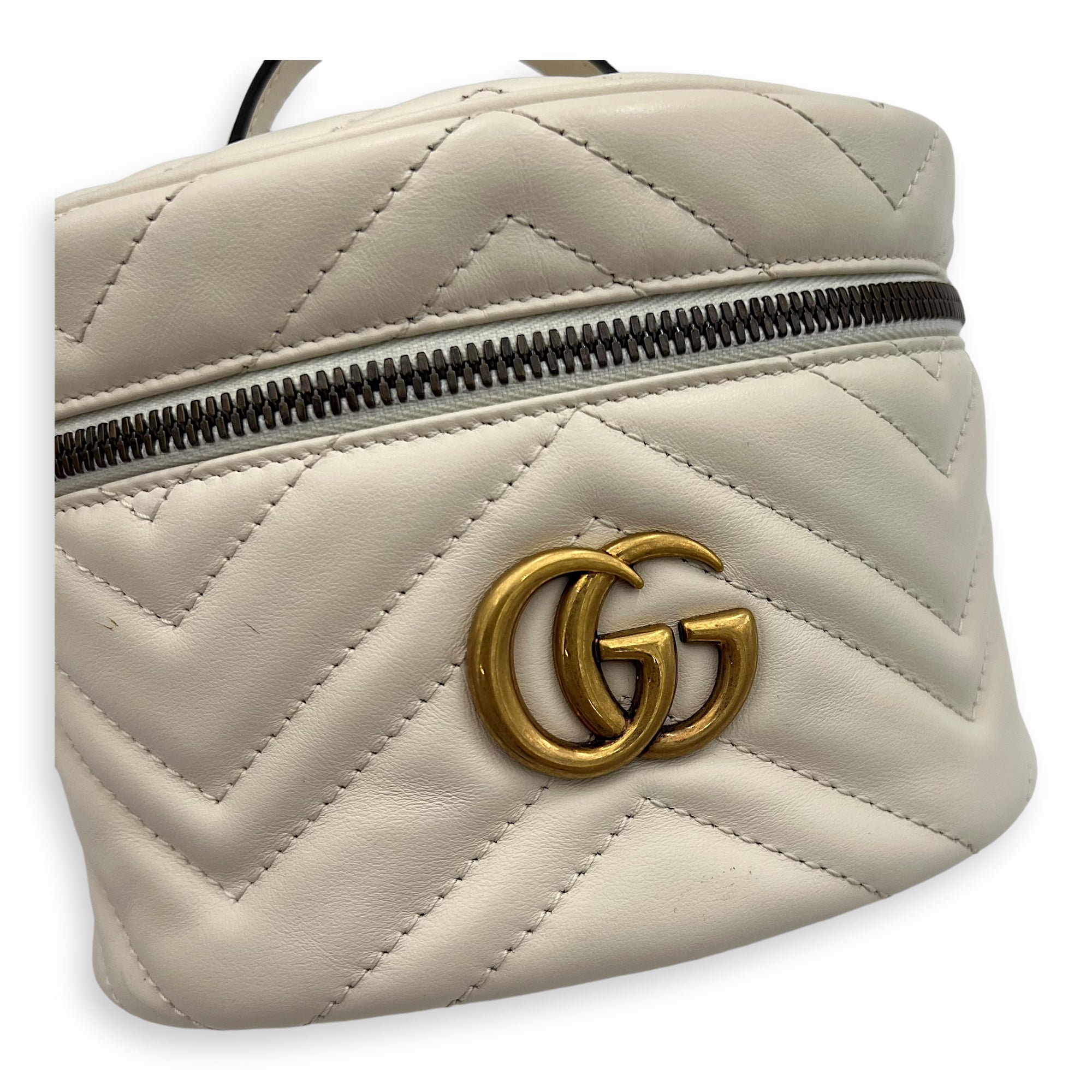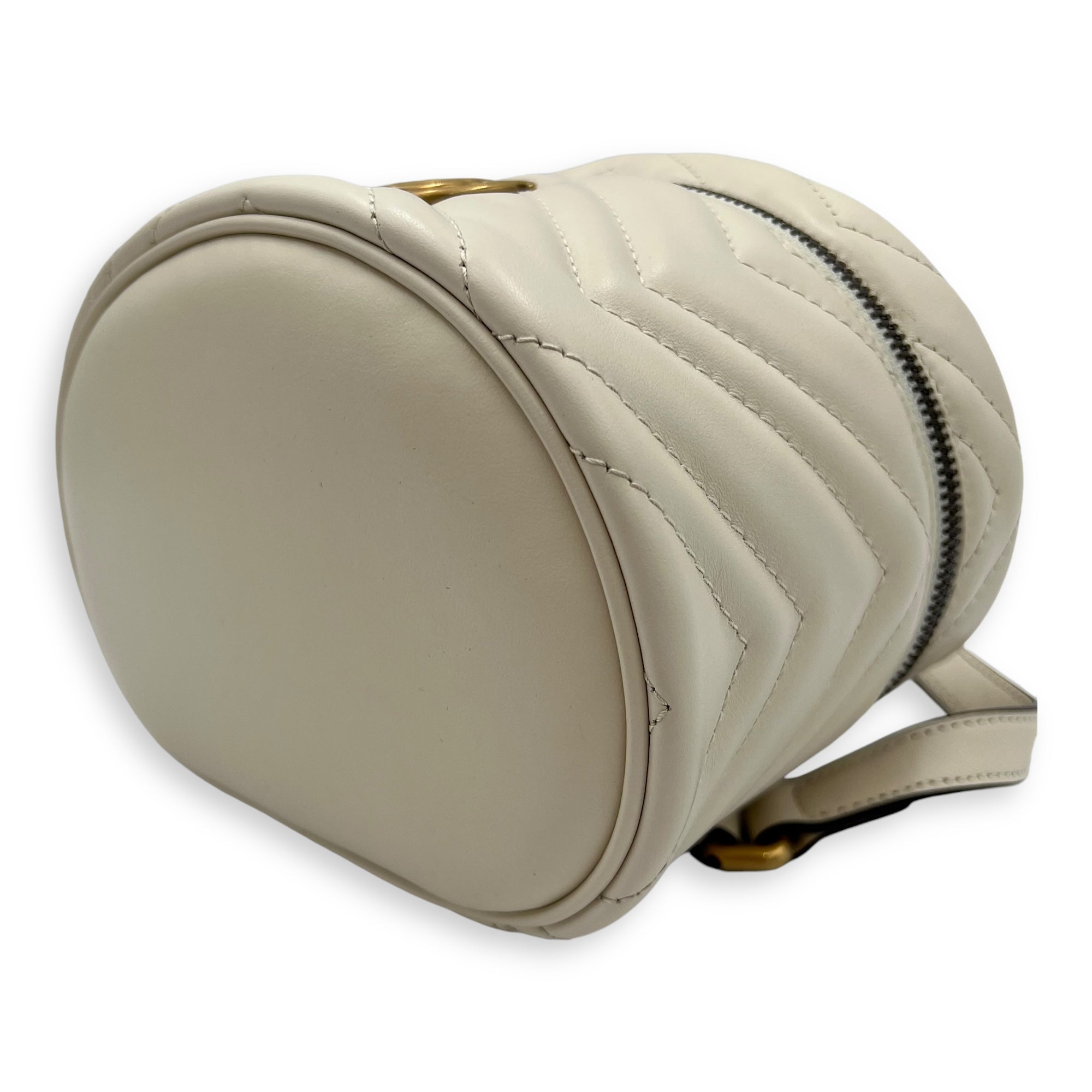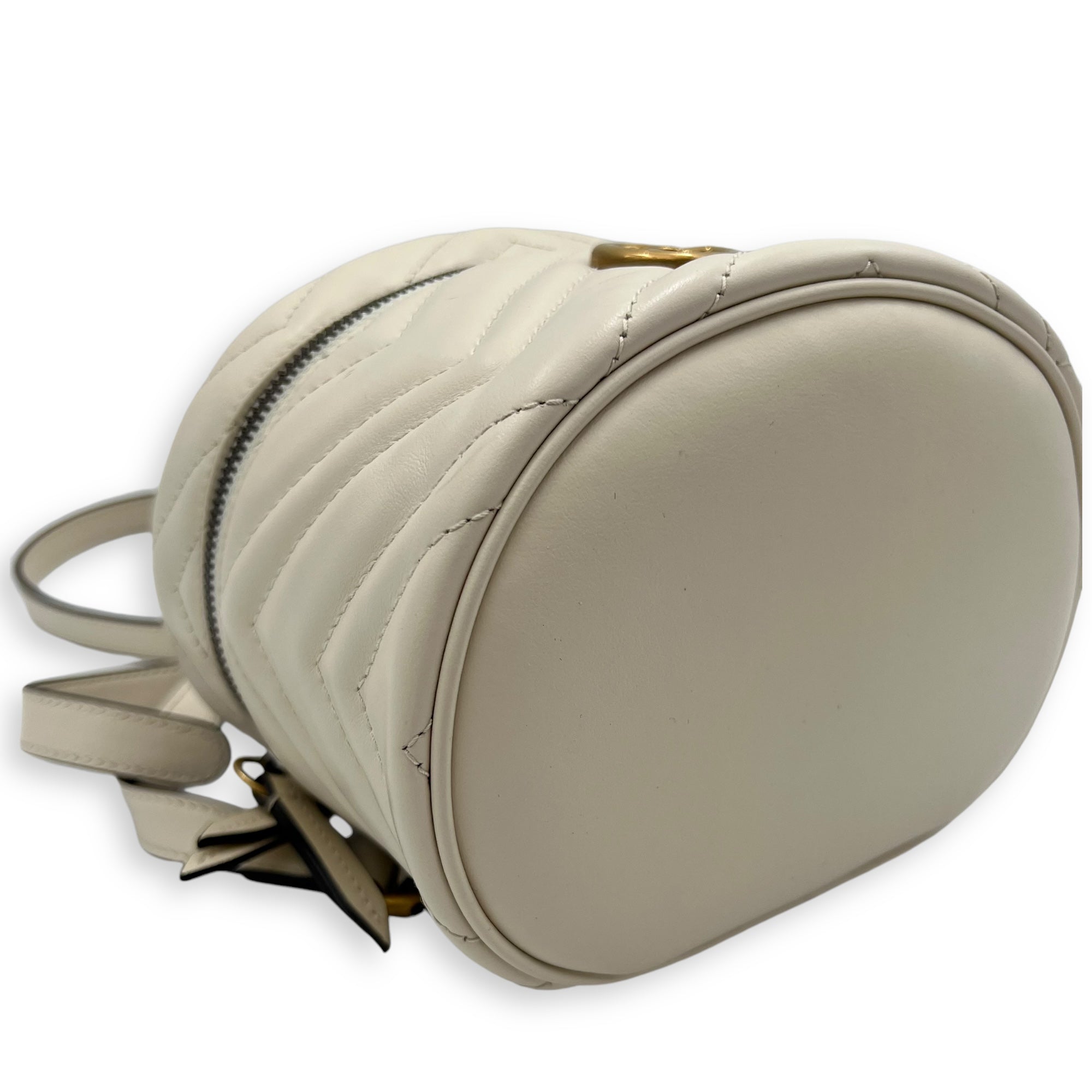 GG Marmont Backpack White in Calfskin, Gold hardware