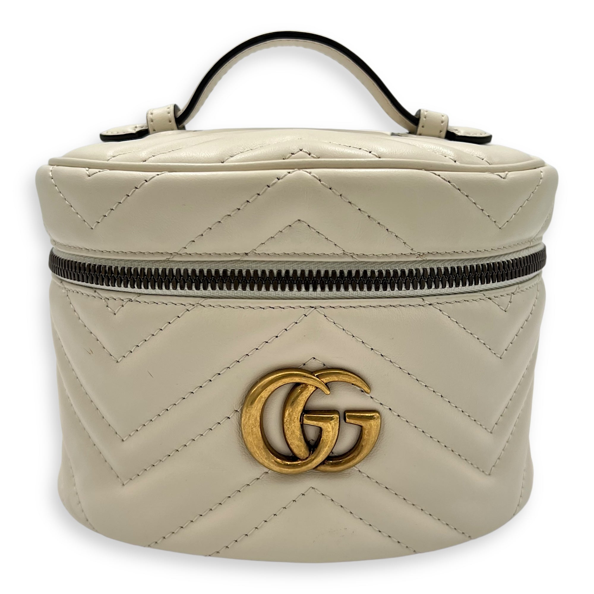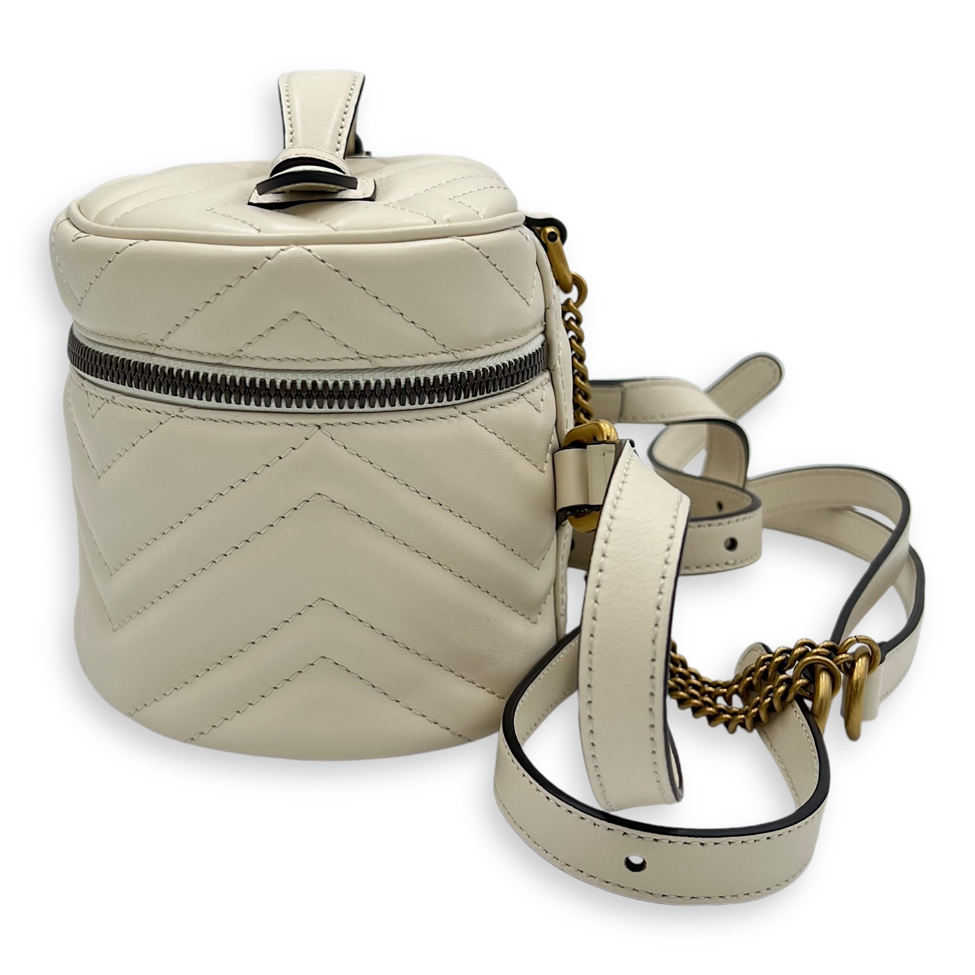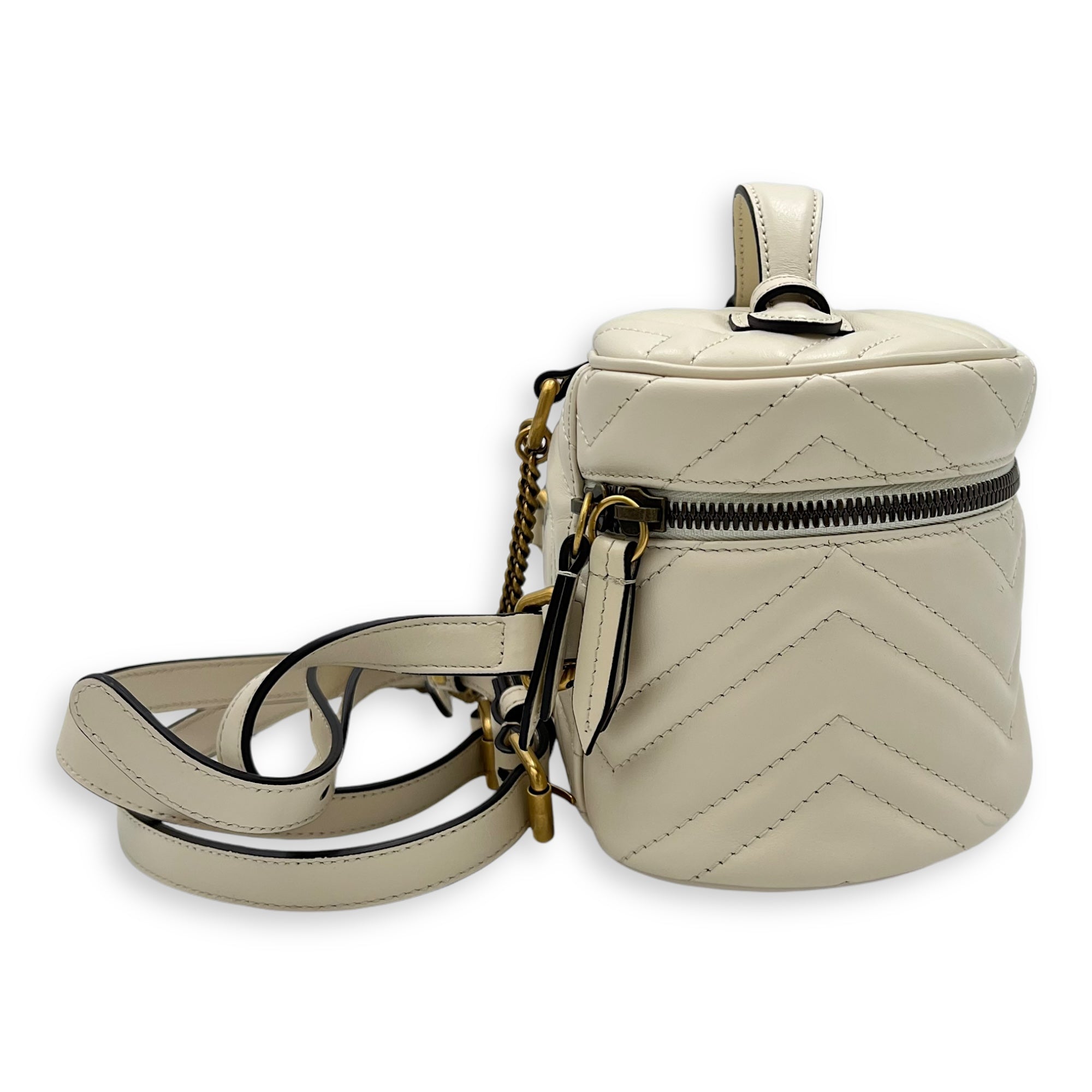 GG Marmont Backpack White in Calfskin, Gold hardware