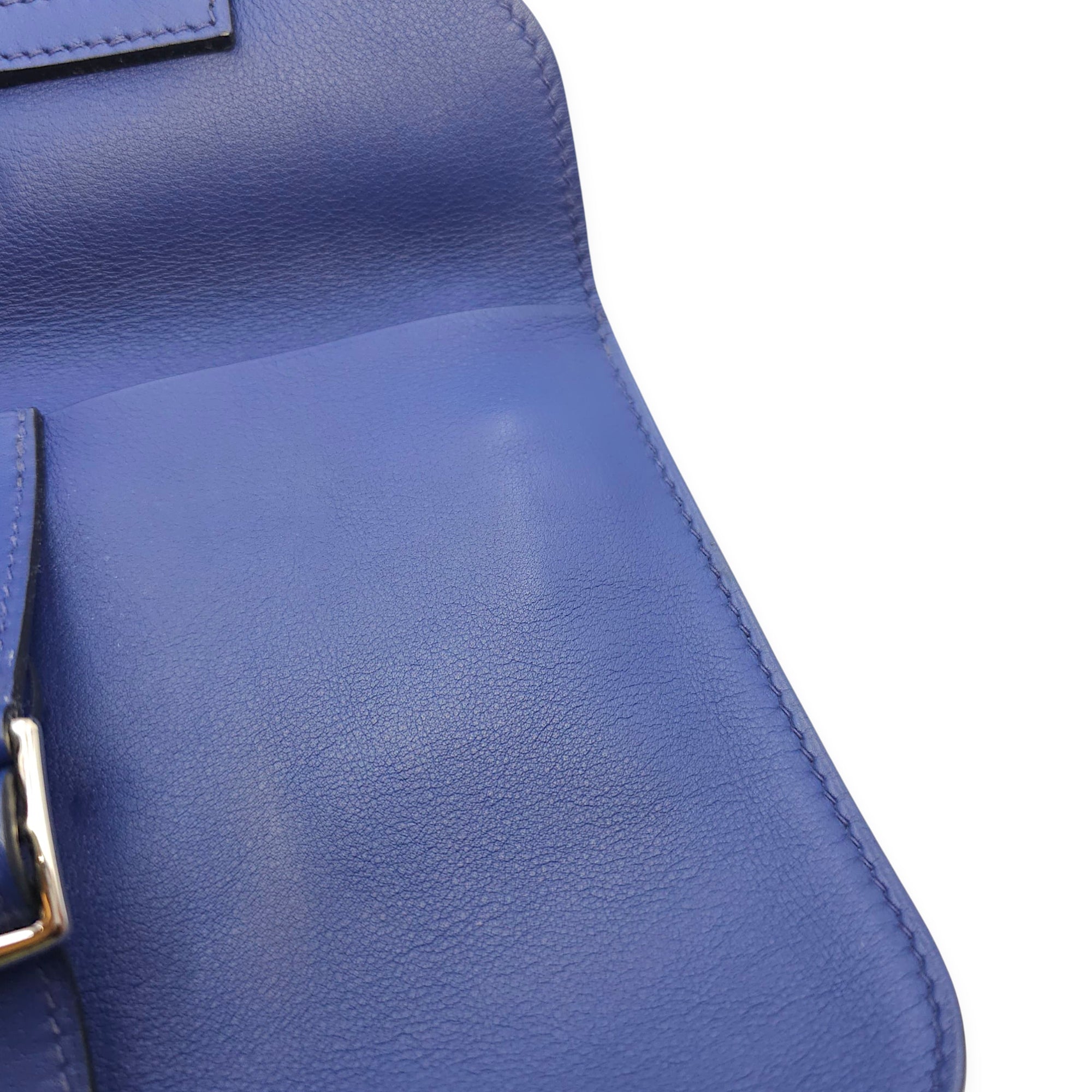 – Compartments: Markings under the flap, staining on the interior