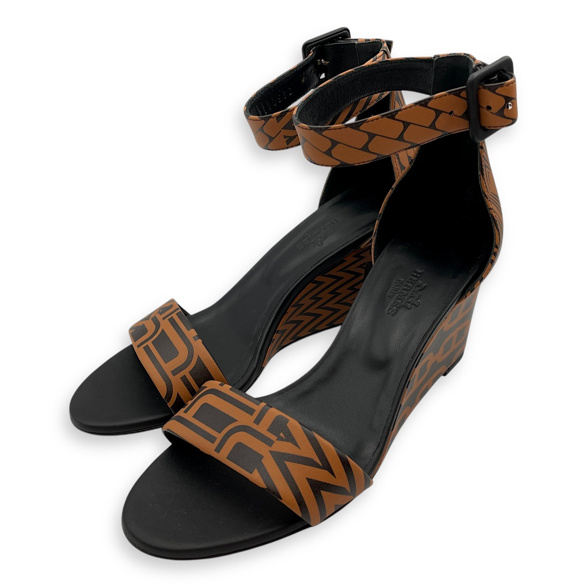 Imprime Acapulco 36 Noir/Natural Wedges in Calfskin